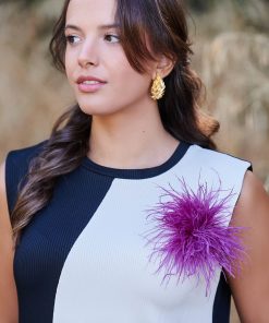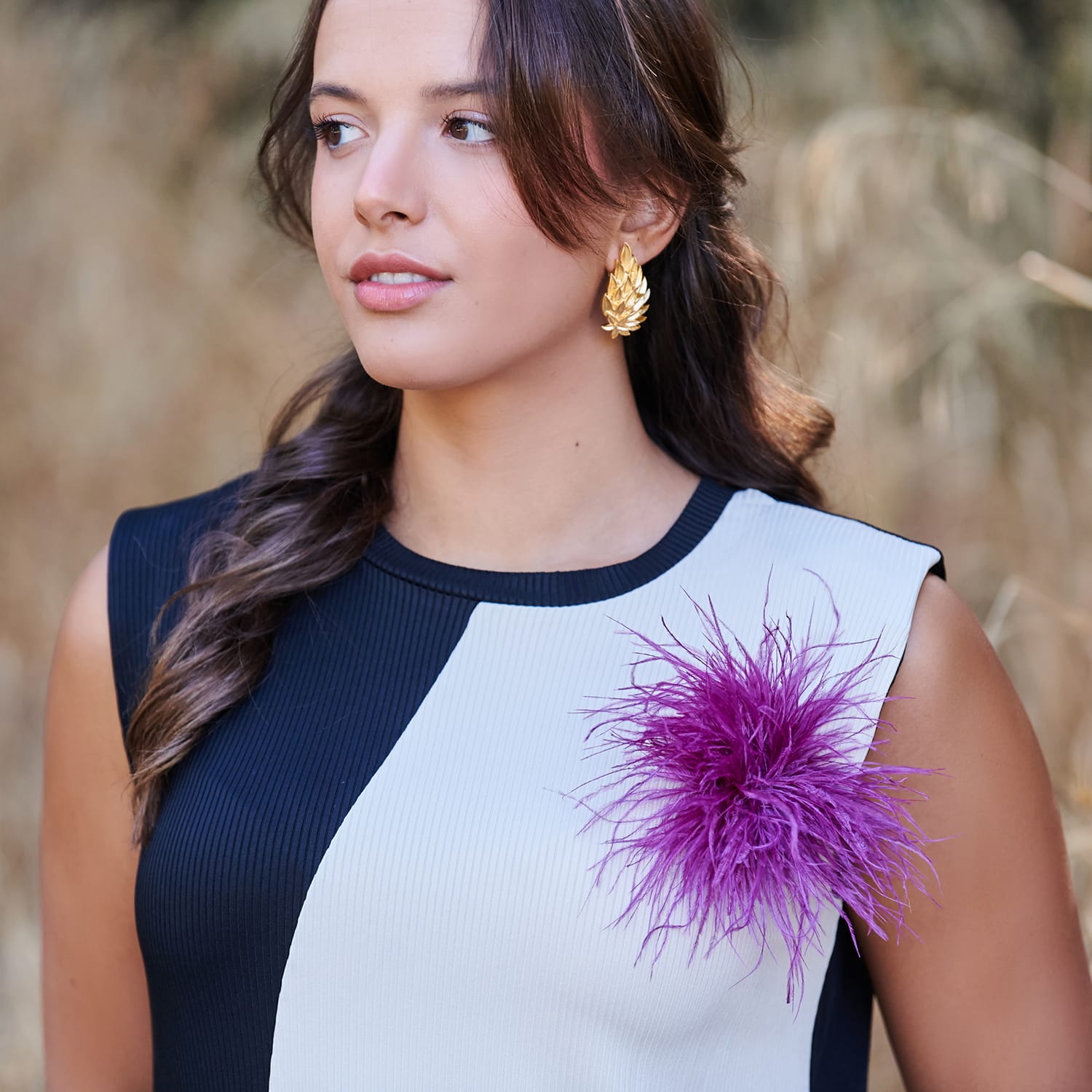 El Broche de Plumas de Avestruz es el accesorio ideal para quienes buscan dar un toque sofisticado, elegante y original a su look de invitada. Con un diámetro de 14 cm, este broche aporta volumen y movimiento gracias a las delicadas plumas naturales de avestruz, ligeras y con gran presencia visual.