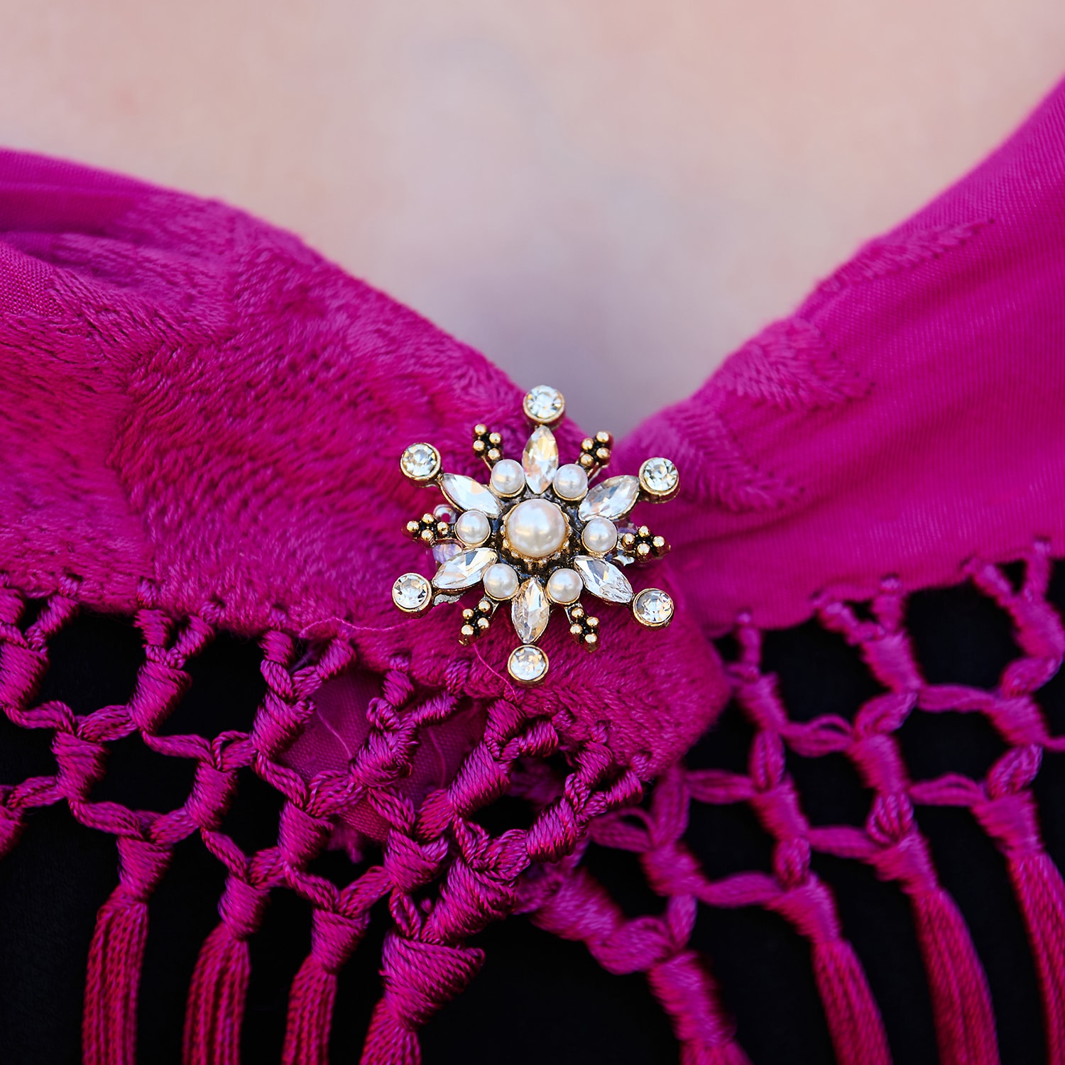 El mantoncillo de flamenca Mercedes Buganvilla es el accesorio perfecto para realzar tu traje de flamenca con un color vibrante. El buganvilla es un color que siempre está de moda. Es un símbolo de frescura, feminidad y tradición. Se adapta a cualquier evento flamenco, desde ferias hasta romerías.