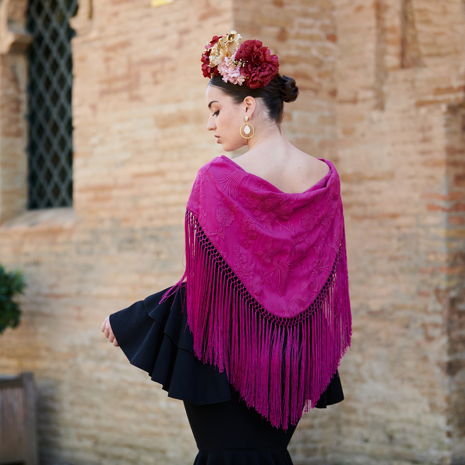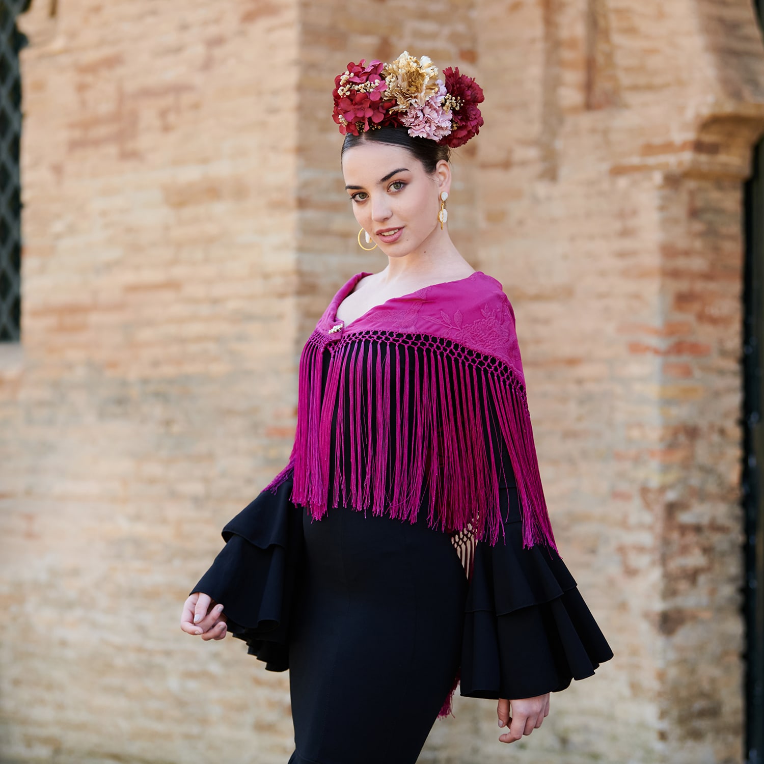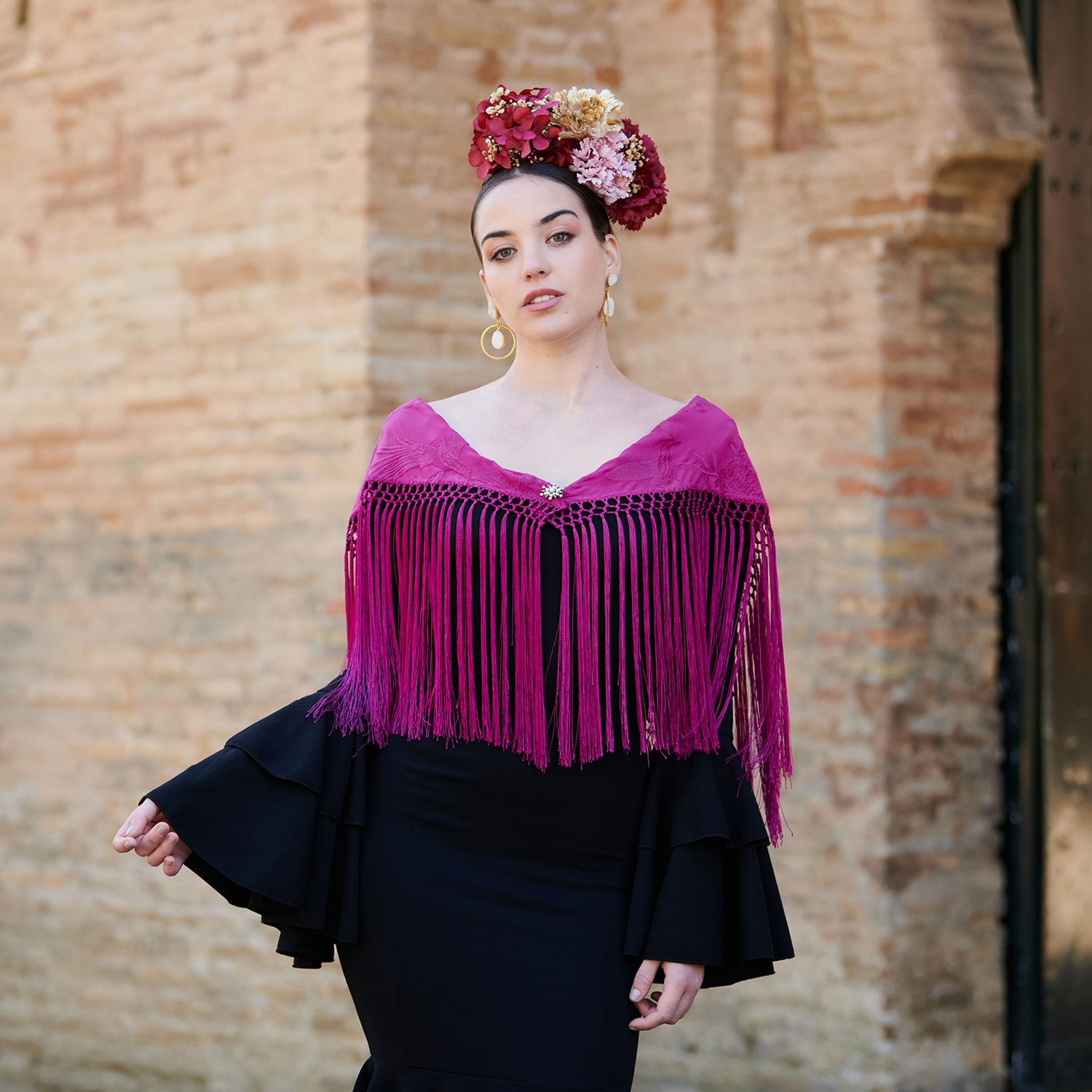 El mantoncillo Mercedes Buganvilla no solo es un accesorio, sino una declaración de estilo que mezcla la fuerza del color con la tradición artesanal. Este tono atemporal resalta tu look flamenco, aportando elegancia y distinción en cualquier evento.