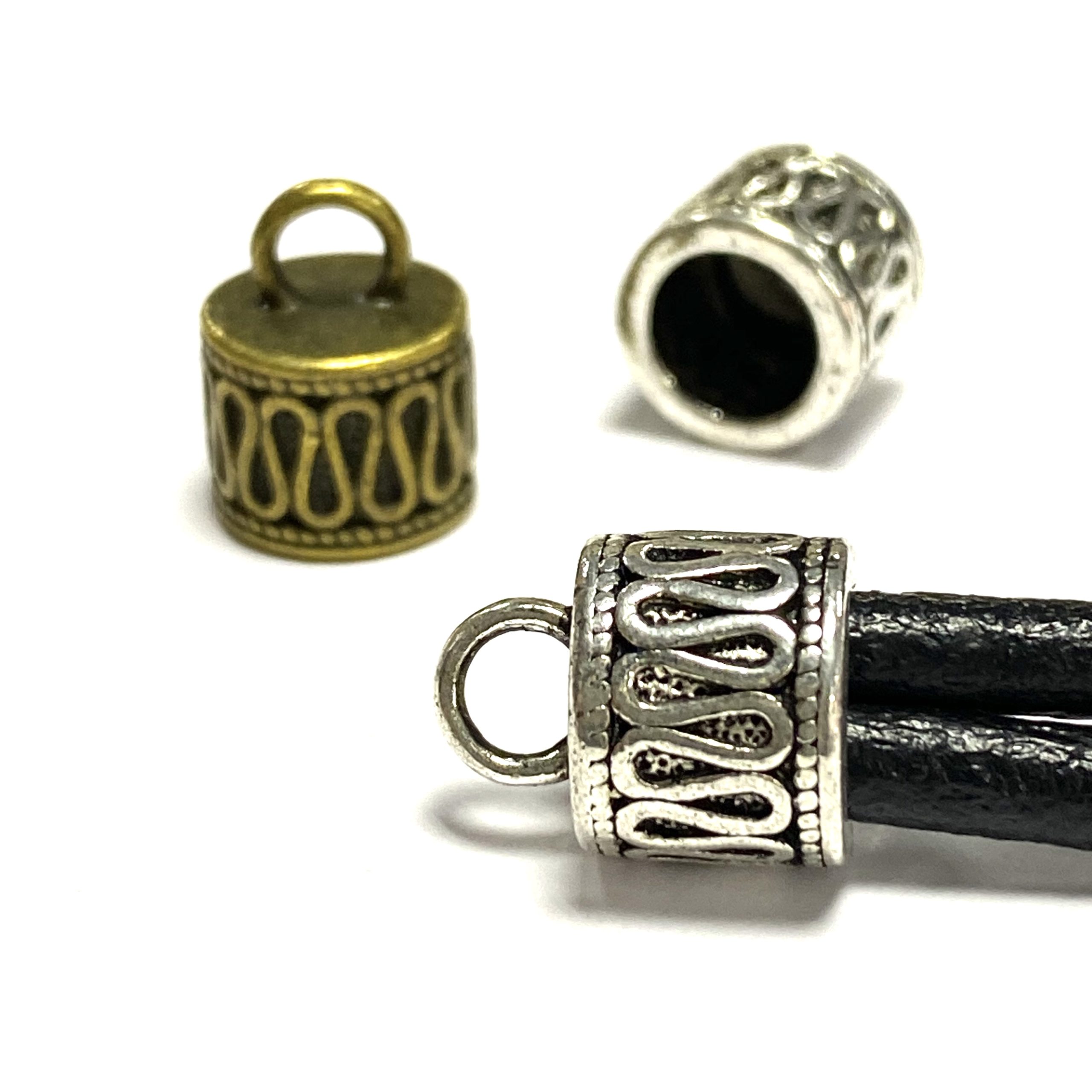 Terminal metálico labrado zig-.zag para cordones de 8mm o por ej. dos cordones de 4mm.